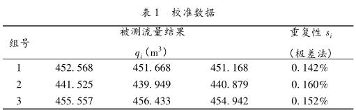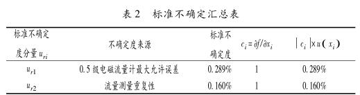 1 概述 供水管網(wǎng)區(qū)域流量計(jì)的安裝應(yīng)用,是供水企業(yè)加強(qiáng)管網(wǎng)運(yùn)行管理和優(yōu)化供水運(yùn)行調(diào)度的一項(xiàng)基礎(chǔ)性工作。它對了解供水管道尤其是多水源供水管網(wǎng)的流向、流量及流速變化,分析管道水力條件,監(jiān)測管道漏損情況,具有積極的作用。 2 安裝注意事項(xiàng) 當(dāng)前適合測量大口徑供水主干管道的流量計(jì)主要有:電磁流量計(jì)、超聲波流量計(jì)、渦街流量計(jì)、孔板流量計(jì)等。這其中,電磁流量計(jì)因其具有測量精度高、量程范圍大、壓力損失小、測量通道通過性好、受流體介質(zhì)影響小和前置直管段要求短等諸多優(yōu)點(diǎn),近年來已被越來越多的供水企業(yè)所廣泛使用。但用電磁流量計(jì)對城市供水管道流量的測量時(shí)要注意以下注意事項(xiàng): 電磁流量計(jì)的安裝與調(diào)試相對其它流量計(jì)要求更為嚴(yán)格,安裝地點(diǎn)應(yīng)避免振動(dòng)和強(qiáng)磁場,在安裝時(shí)必須使變送器和管道有良好的接觸及接地;在管道流速與速度分布不符合設(shè)定條件或被測量管段中存留有氣體時(shí),將會(huì)產(chǎn)生較大的測量誤差;管道流速過低時(shí),放大和測量與干擾信號相同數(shù)量級的感應(yīng)電勢較為困難,且儀表易產(chǎn)生零點(diǎn)漂移現(xiàn)象;供水管道結(jié)垢或磨損改變內(nèi)徑尺寸后,將影響原定的流量值,從而造成測量誤差。如 100mm 口徑儀表內(nèi)徑產(chǎn)生 10%變化,將會(huì)帶來約 2%附加誤差;沉淀物附著在測量管道內(nèi)壁或電極上時(shí),將使變送器輸出電勢發(fā)生變化,并帶來測量誤差。當(dāng)電極上污垢物達(dá)到一定厚度后,甚至可能導(dǎo)致儀表無法測量。 因電磁流量計(jì)具有上述局限性,因此在其安裝、調(diào)試和使用、維護(hù)過程中,我們還需要特別加以注意:電磁流量計(jì)應(yīng)盡量選擇安裝于長距離直管段位置,遠(yuǎn)離管道彎頭、閥門等局部阻力件,以避免因管道流速頻繁變化,而造成的測量誤差;電磁流量計(jì)應(yīng)避免安裝在供水管網(wǎng)的高點(diǎn)位置,情況特殊管段前后位置應(yīng)適當(dāng)設(shè)置管道排氣設(shè)施,以減少管段存留氣體的影響;電磁流量計(jì)應(yīng)避免安裝于變壓器、電機(jī)房等易產(chǎn)生較大磁場設(shè)備的附近,以免受到電磁干擾。若必須安裝于此類位置,應(yīng)考慮相應(yīng)的屏蔽措施;電磁流量計(jì)應(yīng)盡量遠(yuǎn)離加壓泵站、重型車道等有較大振動(dòng)源位置安裝,若不可避免,應(yīng)采取加固措施來穩(wěn)定儀表附近的管道;電磁流量計(jì)變送器外殼、屏蔽電纜、測量本體及兩端的管道都應(yīng)接地,接地極應(yīng)單獨(dú)設(shè)置,接地電阻應(yīng)小于 10 歐姆,禁止接到電氣或公共接地網(wǎng)上;在垂直管道上安裝時(shí),被測流體的流向應(yīng)自下而上。在水平管道上安裝時(shí),兩個(gè)測量電極不應(yīng)在管道的正上方或正下方位置;應(yīng)確保電磁流量計(jì)上、下游端直管段長度至少分別應(yīng)達(dá)到裝置管道直徑的 5 倍和 2 倍;應(yīng)確保電磁流量計(jì)所處環(huán)境不受積水浸泡和腐蝕性氣體侵害。 ?即便我們嚴(yán)格按照上述注意事項(xiàng)進(jìn)行電磁流量計(jì)的安裝調(diào)試和維護(hù)管理,也只能說最大程度減少了設(shè)備誤差率的發(fā)生。依據(jù) JJG1033 -2007《電磁流量計(jì)》相關(guān)標(biāo)準(zhǔn),結(jié)合實(shí)際運(yùn)行條件及狀況,下面將對電磁流量計(jì)測量城市供水管道流量的測量不確定度展開具體分析。 3 測量不確定度評定 3.1.1 測量依據(jù):JJG1033 -2007《電磁流量計(jì)》檢定規(guī)程 3. 1. 2 主要測量標(biāo)準(zhǔn)器:0. 5 級的電磁流量計(jì) 3. 1. 3 校準(zhǔn)對象及參數(shù):城市供水管道流量 Q 3. 1. 4 工作原理:在封閉管道中,設(shè)置一個(gè)與流動(dòng)管道相垂直的磁場,通過測量導(dǎo)電的液體在磁場中運(yùn)動(dòng)所產(chǎn)生的感應(yīng)電動(dòng)勢推算出流量 Q,即 如下圖 1 為例(安裝位置應(yīng)置于外界磁場、機(jī)械振動(dòng)及噪場應(yīng)小到對流量計(jì)測量影響忽略不計(jì)),(C、D 處裝有兩個(gè)垂直于管軸的電極)。 式中,Q—校準(zhǔn)時(shí)標(biāo)準(zhǔn)器換算到流量計(jì)處狀態(tài)的累積流量值; U—直流式電磁流量計(jì)用來測量流體橫越磁場時(shí)所感生的電動(dòng)勢; B—磁場; A—管道橫截面積; d—管道直徑; k—修正系數(shù),用來修正導(dǎo)出公式時(shí)未計(jì)及的因素(如流量計(jì)管道內(nèi)的流速事實(shí)上并不均勻)的影響。在常用的流量計(jì)中,k 約為 0. 8,但對于特定尺寸、用于特定工況的電磁流量計(jì),則要用容積法(一定時(shí)間內(nèi)流過的容積)標(biāo)定 k 值; q—校準(zhǔn)時(shí)流量計(jì)顯示的累積流量值;即 Q = q。 注:本次實(shí)驗(yàn)中,由于溫度對本次實(shí)驗(yàn)測量各分量影響較小,故可不考慮溫度的影響。 3. 2. 1 測量模型 Q = q 3. 2. 2 方差和傳播系數(shù) 3. 2. 3 標(biāo)準(zhǔn)不確定度來源 (1)0. 5 級電磁流量計(jì)最大允許誤差引入的標(biāo)準(zhǔn)不確定度分量 (2)流量測量重復(fù)性引入的不確定度分量 4 輸入量的標(biāo)準(zhǔn)不確定度評定 4. 1 本次校準(zhǔn)使用 0. 5 級的電磁流量