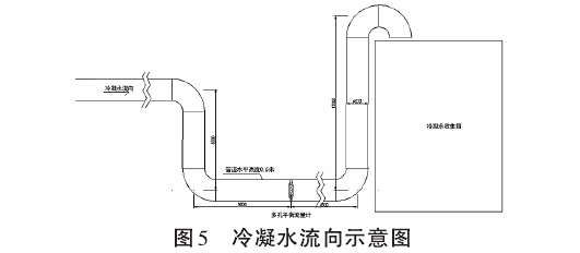 如圖5所示,在冷凝水U型管低點設(shè)計安裝了一臺多孔平衡流量計,用于測量管道回收的冷凝水量。安裝至U型管的低點,理論上是最佳測量位置,原則上也滿足多孔平衡流量計所要求的安裝直管尺寸。但在使用過程中頻繁出現(xiàn)數(shù)據(jù)測量不準(zhǔn),數(shù)據(jù)時有時無現(xiàn)象。